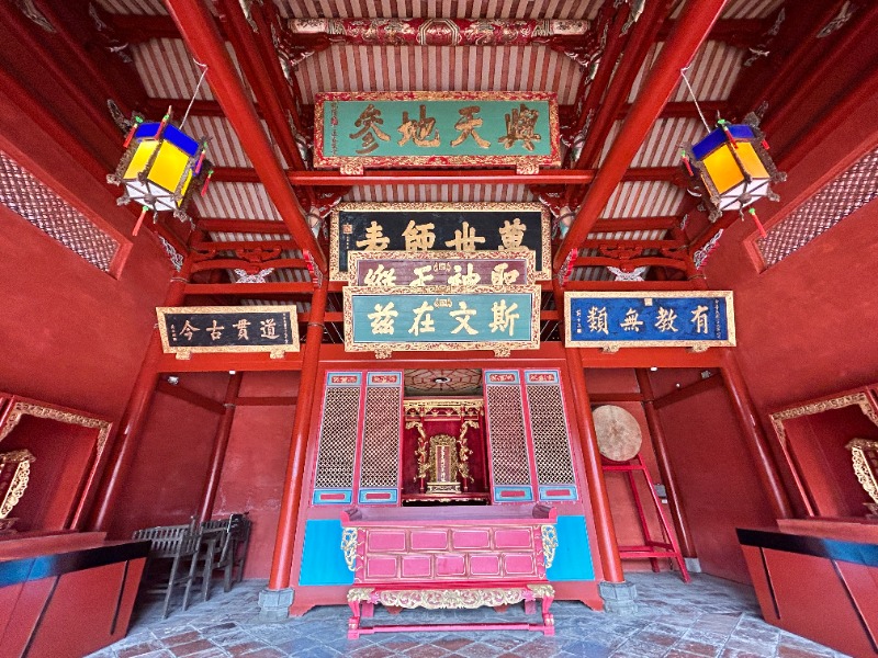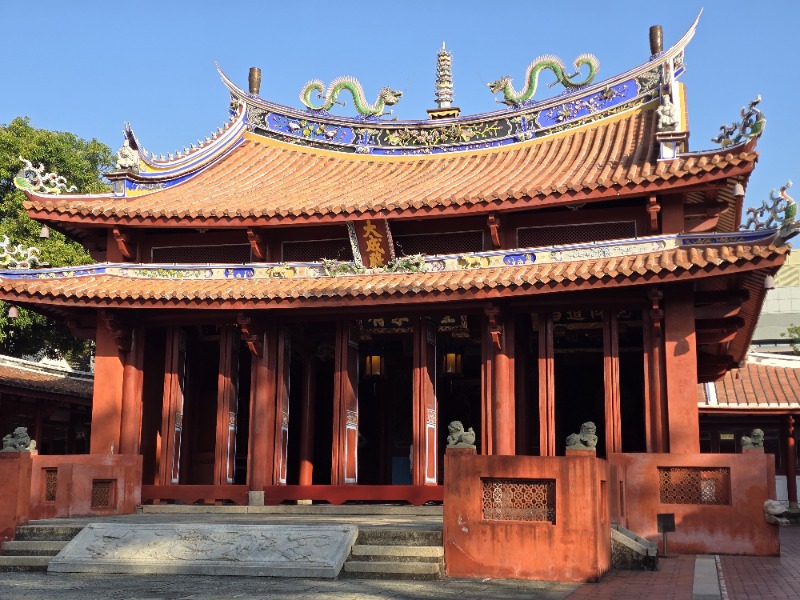 「右廟」則以大成殿為核心,是供奉至聖先師孔子神位、舉行釋奠大典的核心場所。殿內高懸清代皇帝御匾至歷任總統的匾額,象徵對聖賢的至高尊崇。此處為莘莘學子進德修身的精神堡壘,讓人心生敬畏、見賢思齊。