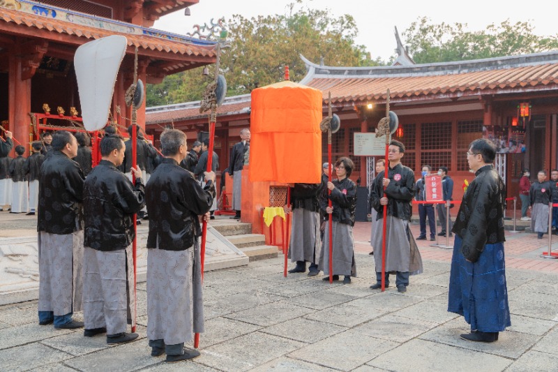 禮生持傘、扇、鈇、鉞、提燈、提爐,出大成門。樂奏「德平之章」。