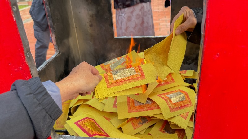 觀看燃燒帛祝的火花,象徵人間獻祭的心意都化成煙及火上達神明。