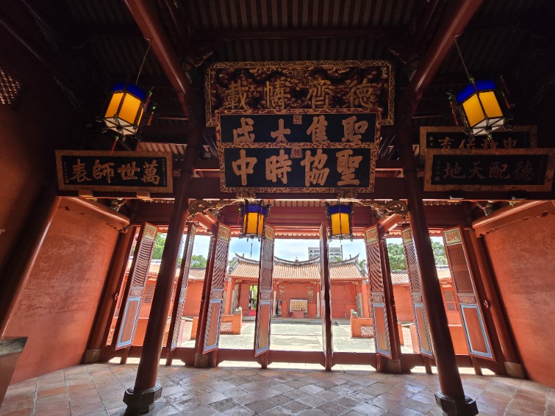 「右廟」則以大成殿為核心,是供奉至聖先師孔子神位、舉行釋奠大典的核心場所。殿內高懸清代皇帝御匾至歷任總統的匾額,象徵對聖賢的至高尊崇。此處為莘莘學子進德修身的精神堡壘,讓人心生敬畏、見賢思齊。