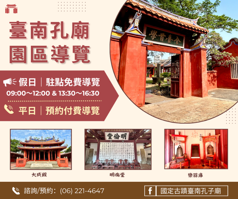 📍 非假日,請電洽孔廟:(06)221-4647(王小姐)