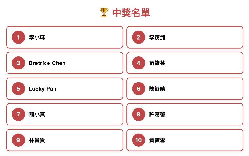 🎁 10位得獎名單(以下為 FB 帳號名稱)