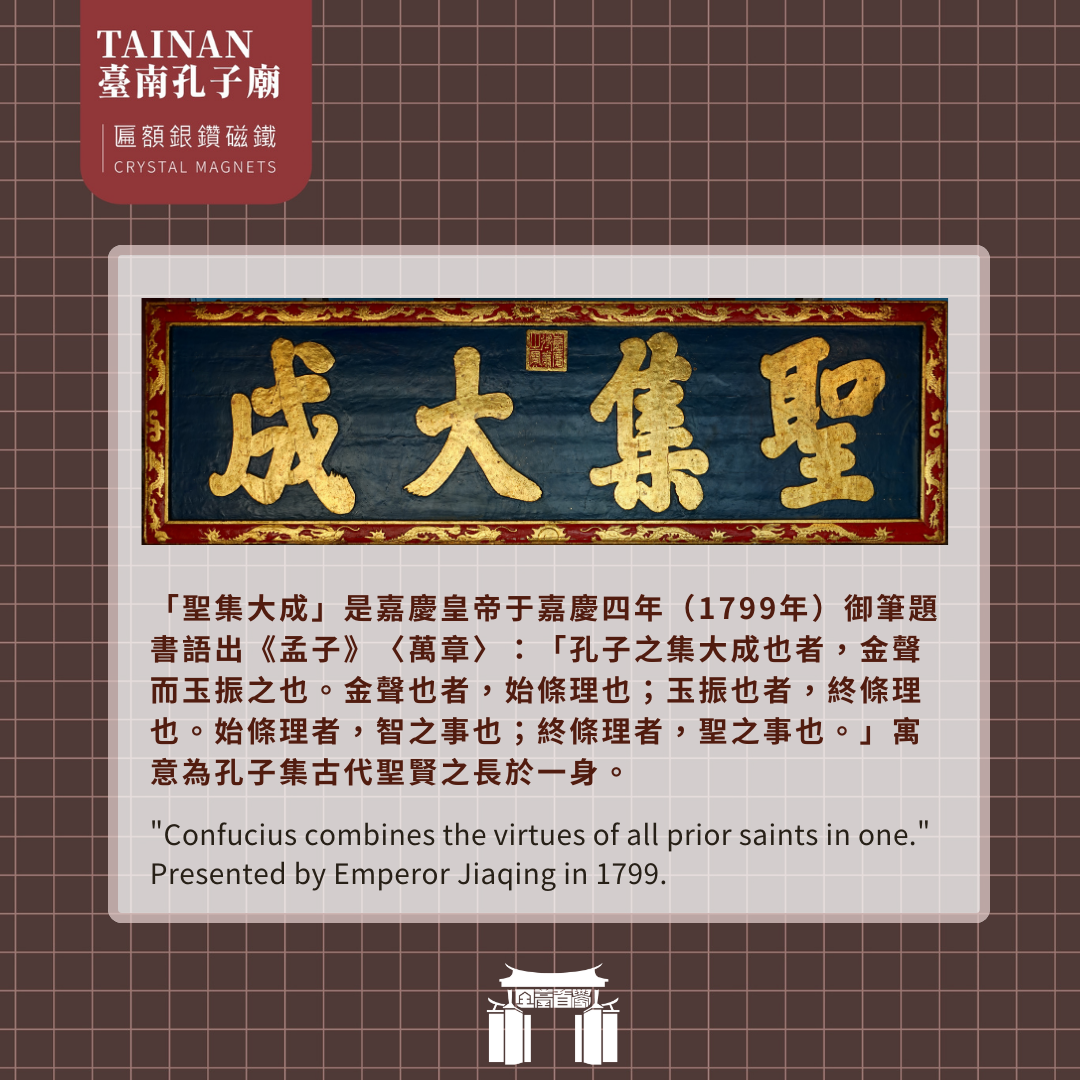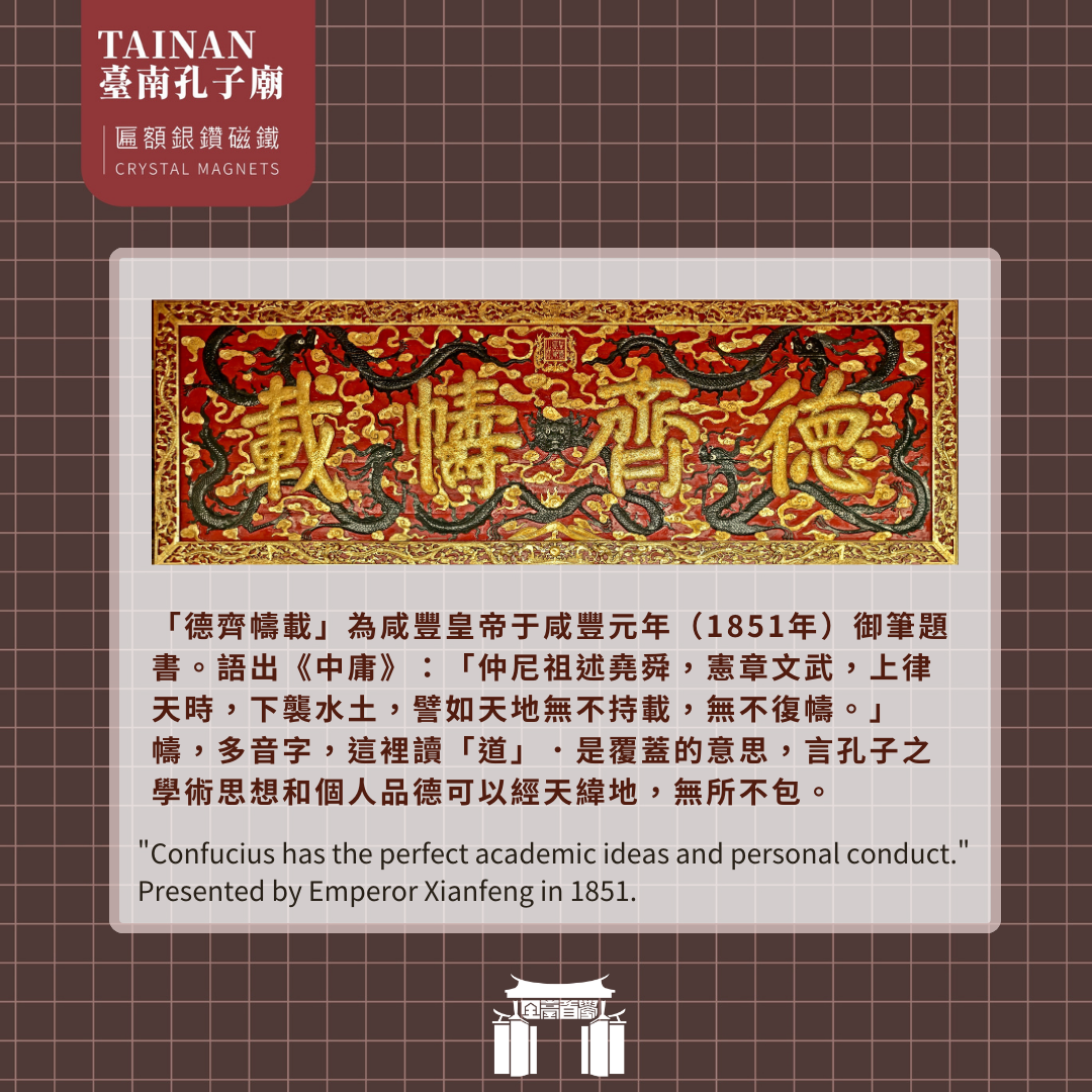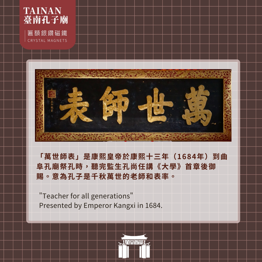 臺南孔廟是唯一完整收藏八方清國皇帝御匾的孔子廟御匾高懸在大成殿內,現在特別製作成小型磁鐵供民眾收藏⭐追蹤臺南孔廟FB粉專【國定古蹟臺南孔子廟】,瞭解更多御匾的典故與奧秘臺南孔子廟臉書