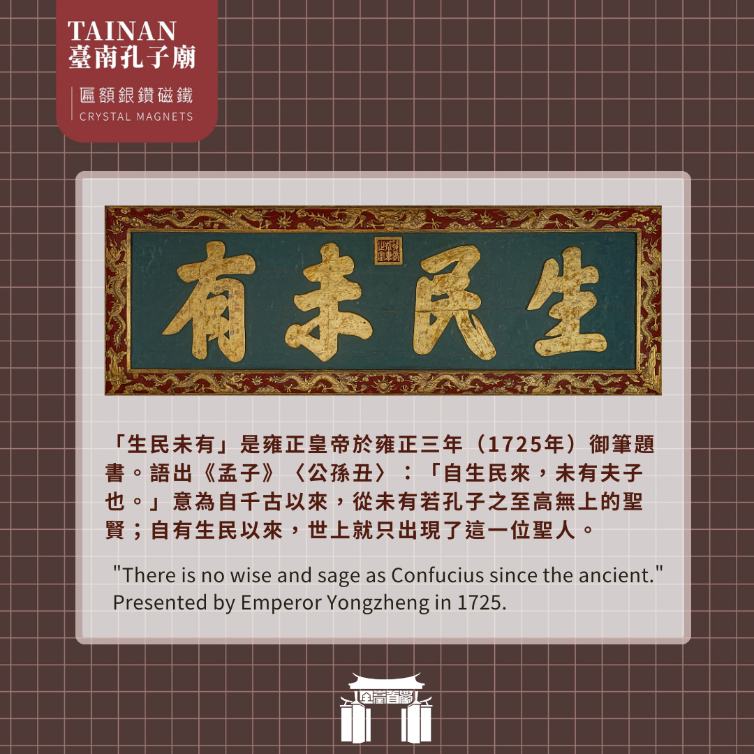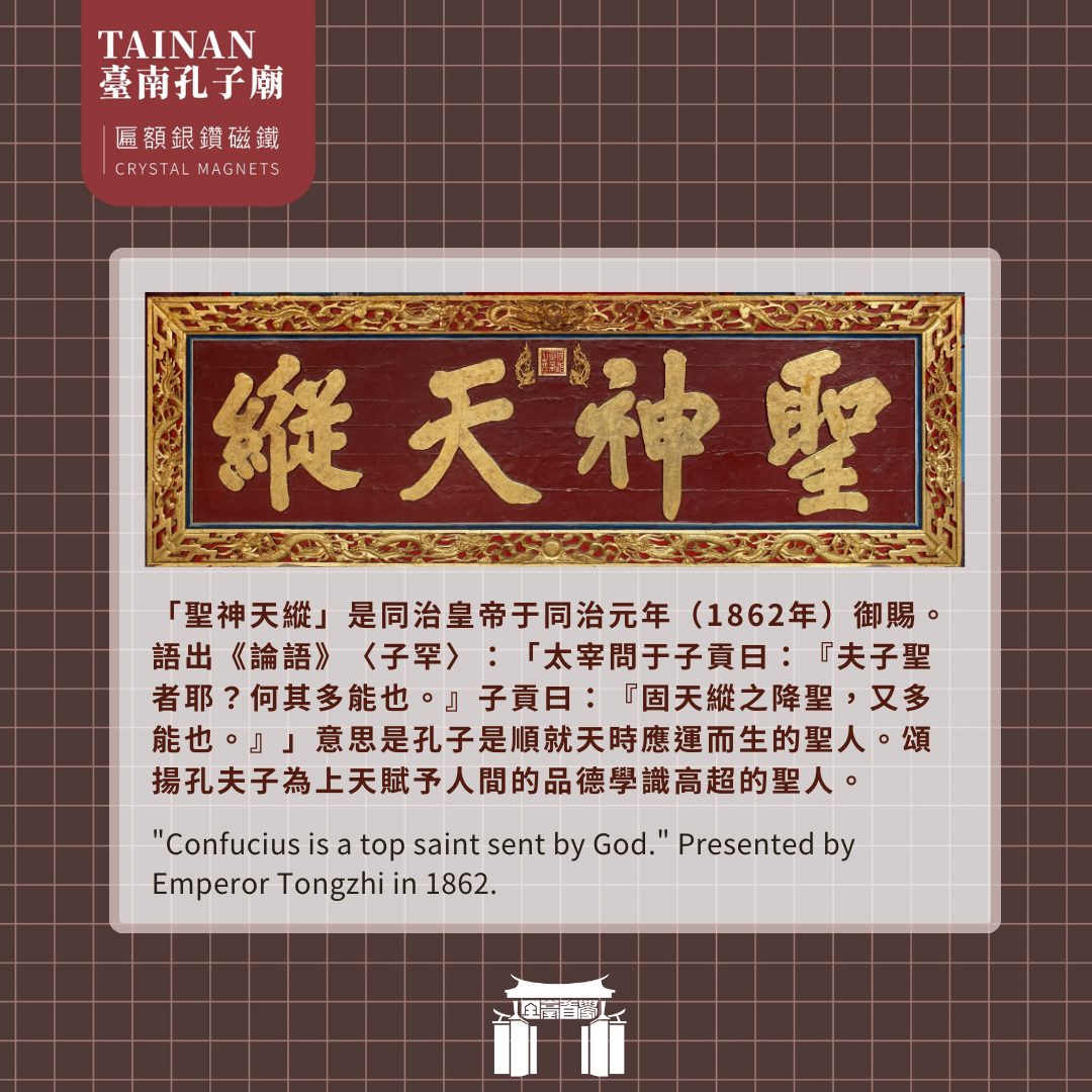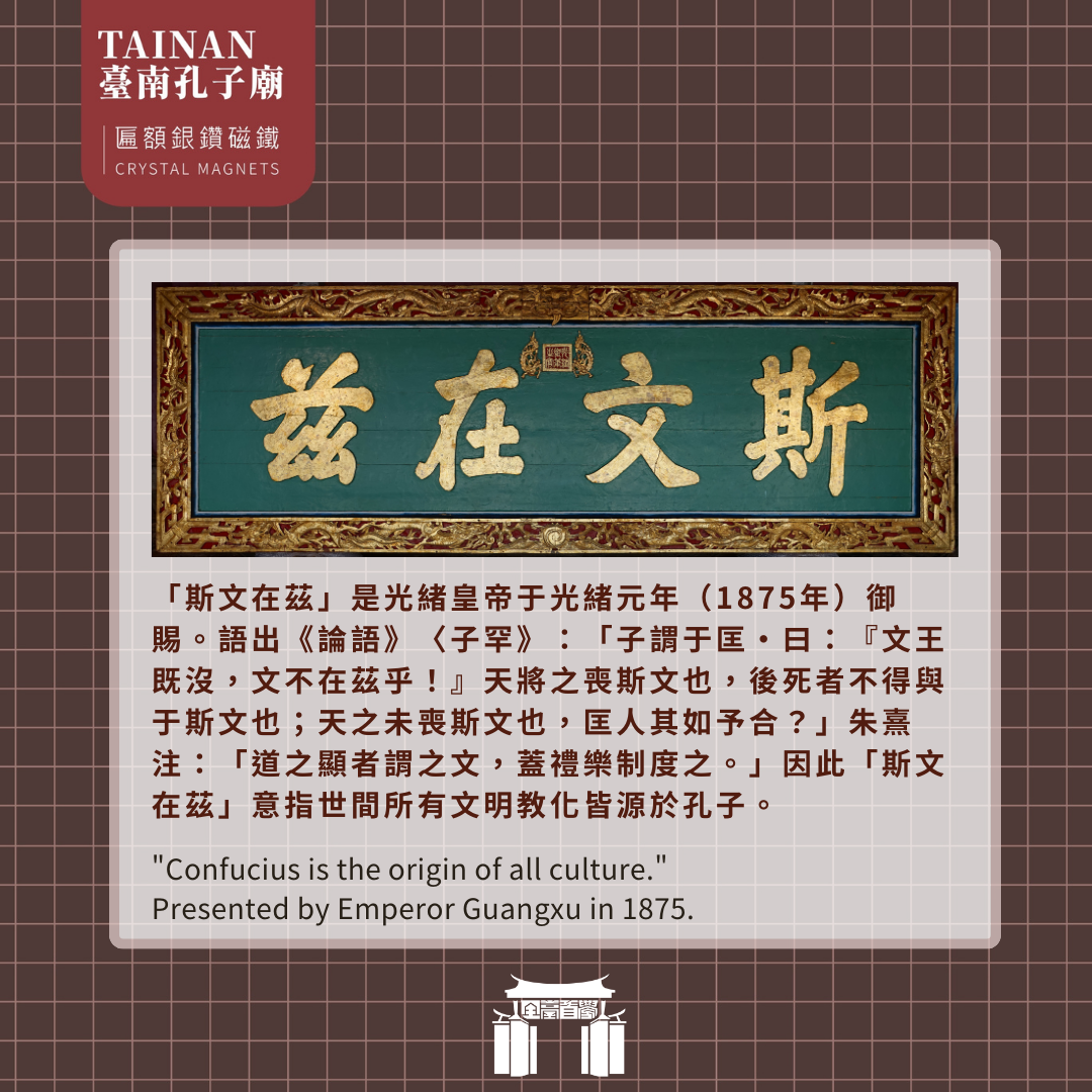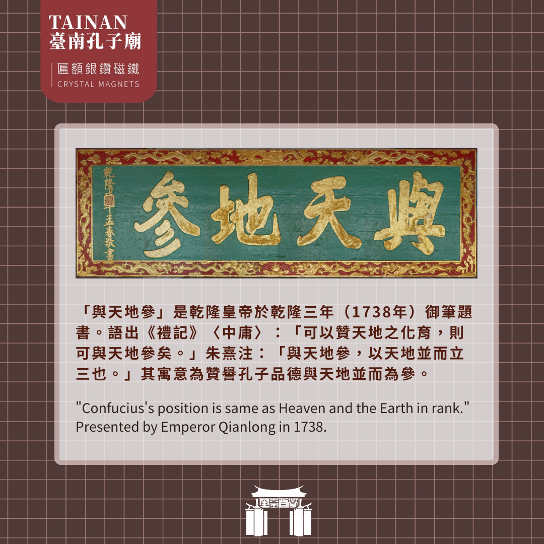 臺南孔廟是唯一完整收藏八方清國皇帝御匾的孔子廟御匾高懸在大成殿內,現在特別製作成小型磁鐵供民眾收藏⭐追蹤臺南孔廟FB粉專【國定古蹟臺南孔子廟】,瞭解更多御匾的典故與奧秘臺南孔子廟臉書