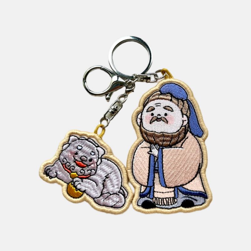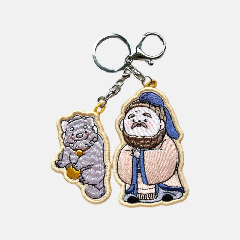 孔子與站臥獅鑰匙圈,以腳踏金球的小石獅與孔子為伴,採用細緻刺繡,完整呈現輕巧可愛風格圖像。可當鑰匙圈或掛飾,陪伴學生、應考生的學習之路,應試題目考不倒,科科都ALL PASS。